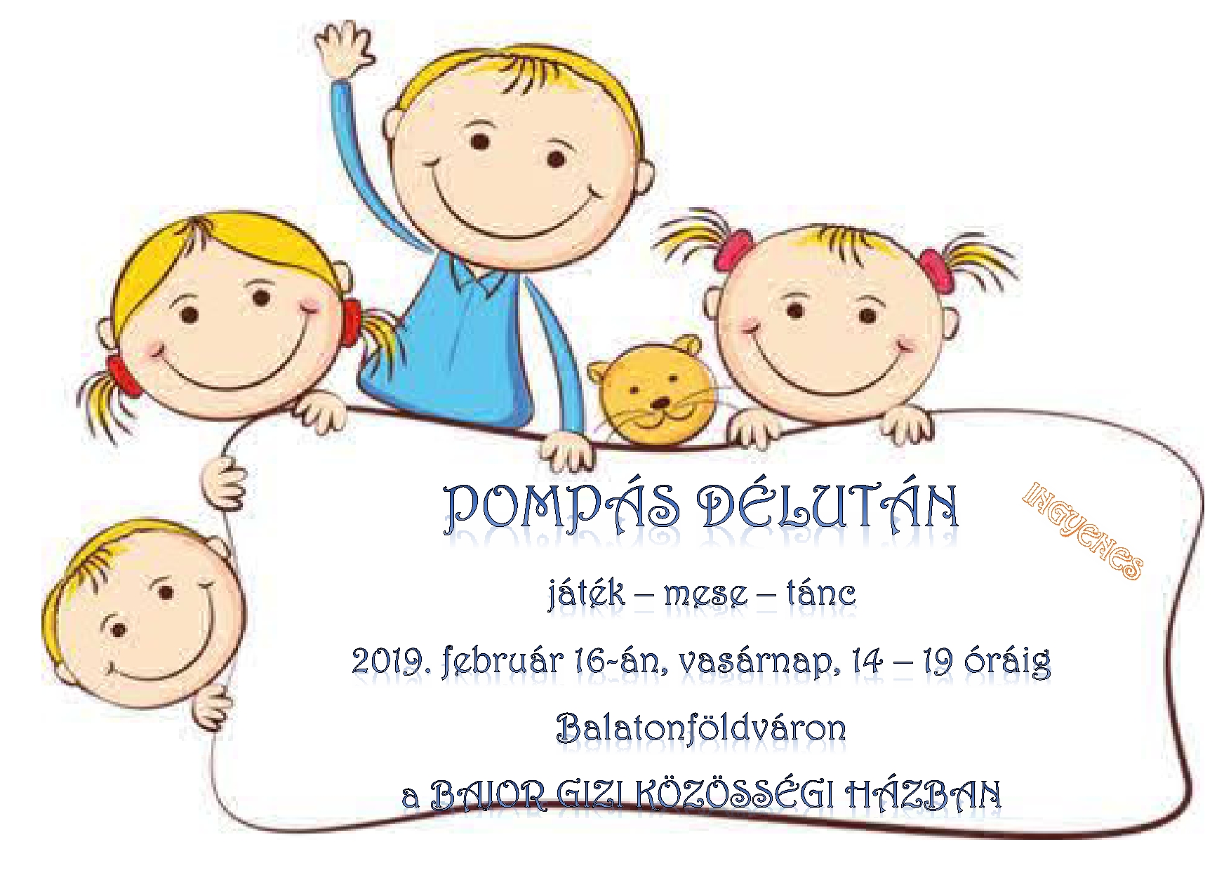 Pompás délutáni elfoglaltságra hívunk mindenkit, aki szeret játszani, mesét hallgatni, táncolni.