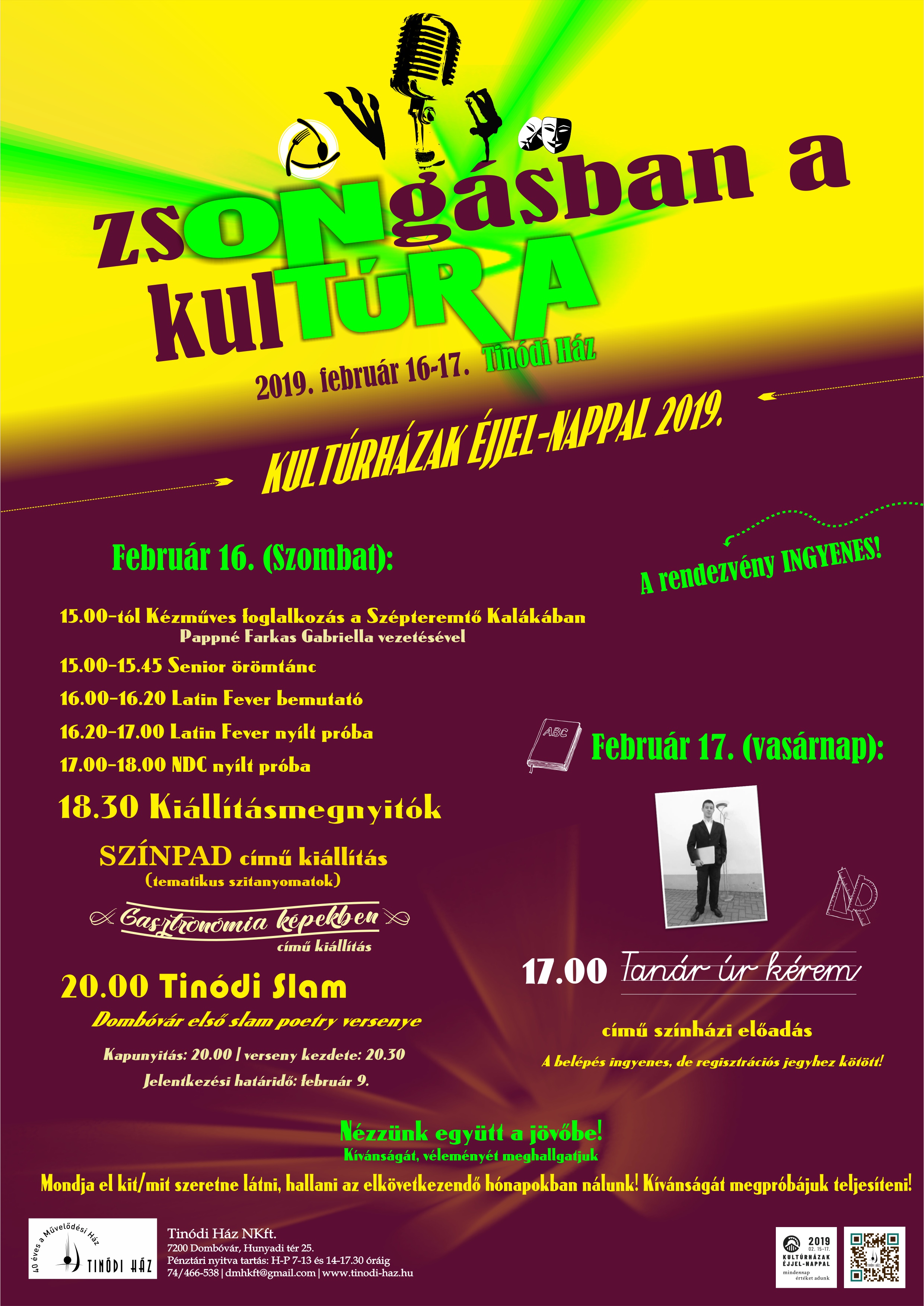 20.00-tól Tinódi Slam - Dombóvár első slam poetry versenye (verseny leírás: https://tinodi-haz.hu)