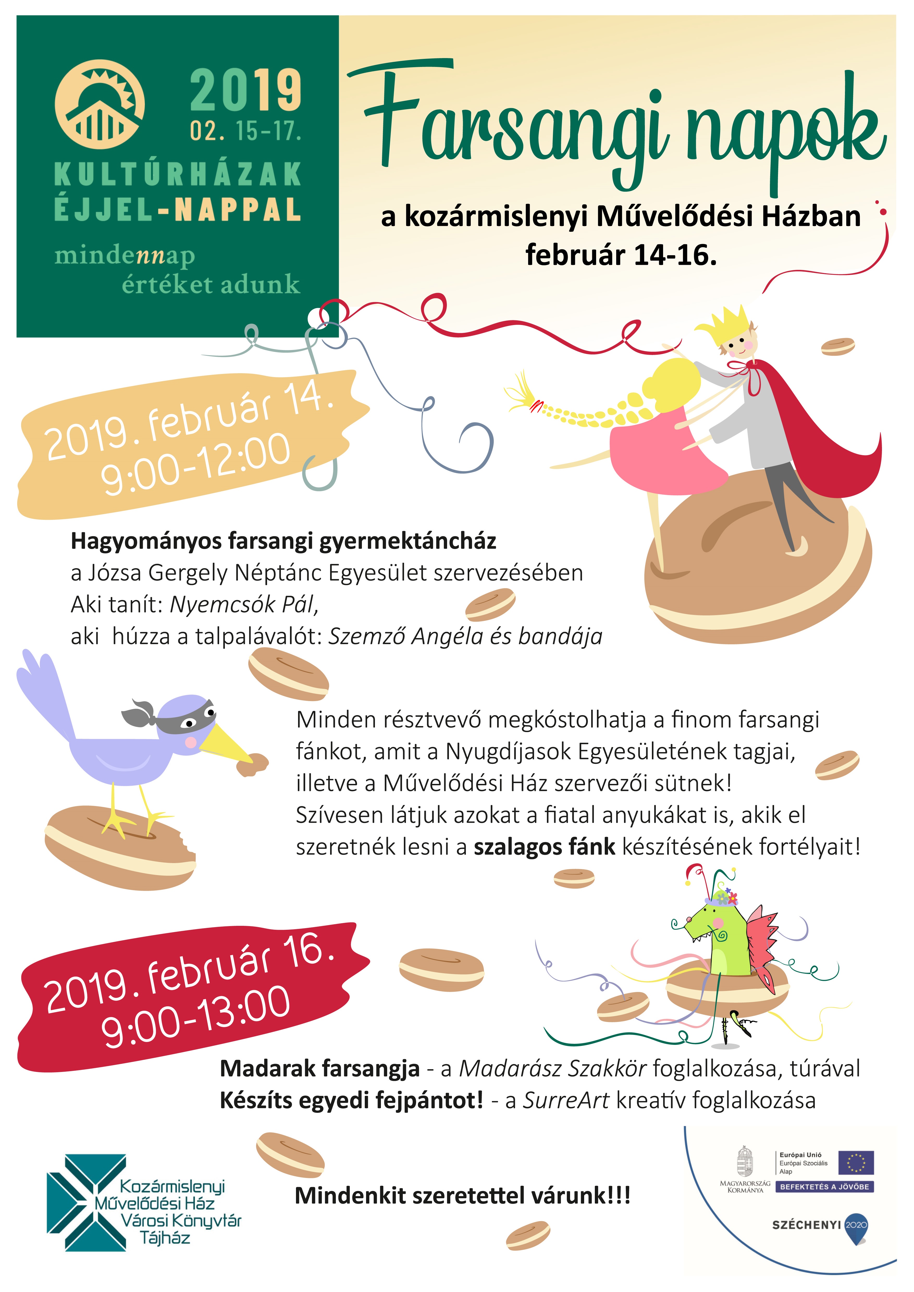 Hagyományos farsangi táncház lesz csütörtökön délelőtt, szalagos fánksütéssel majd szombaton folytatjuk a programokat!