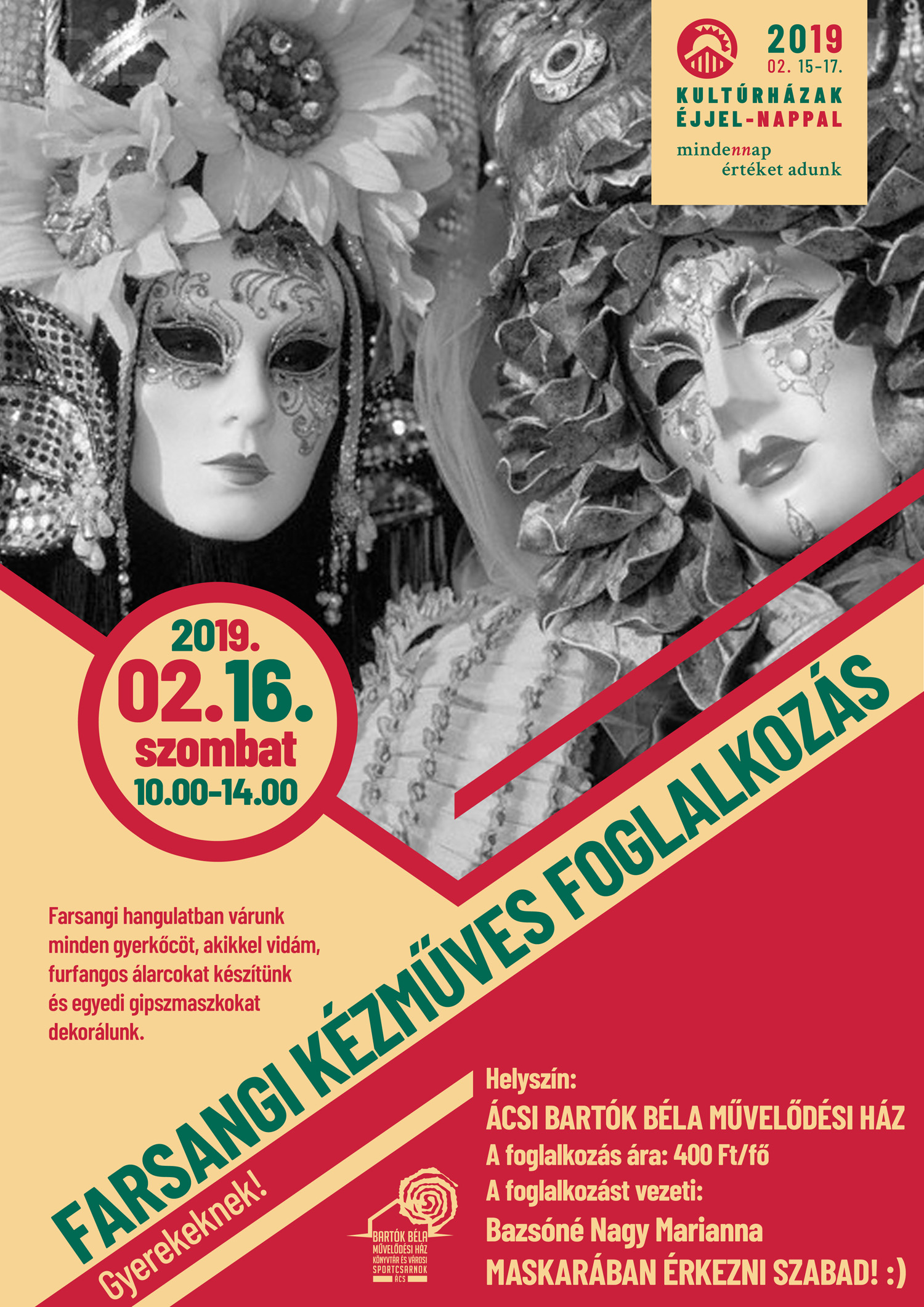 Farsangi hangulatban várunk minden gyerkőcöt, akikkel vidám, furfangos álarcokat készítünk és egyedi gipszmaszkokat dekorálunk.