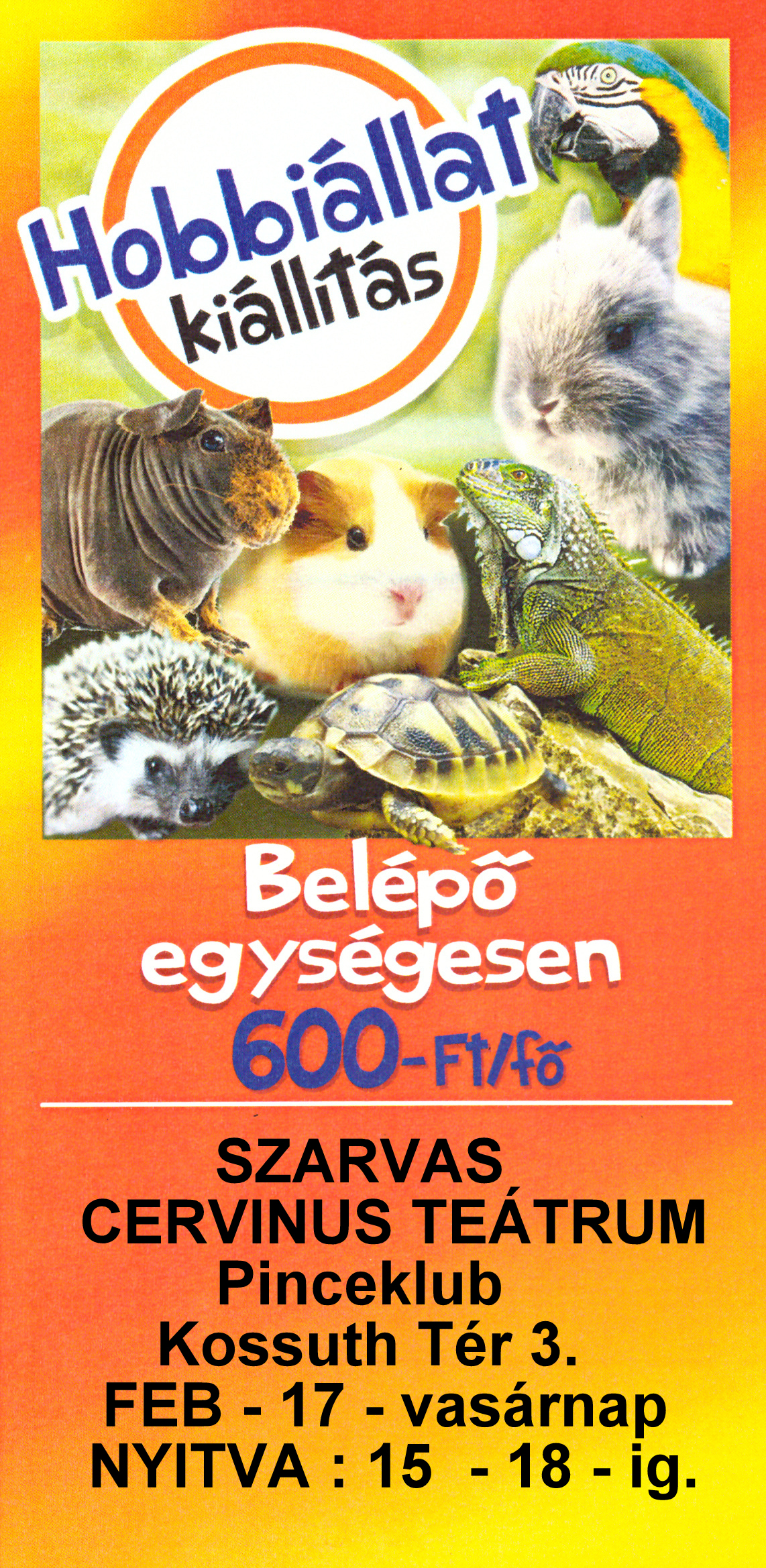 Aranyhörcsögök, tengerimalacok, hüllők, papagájok és sok egyéb kedves kisállat tekinthető meg a Pinceklubban lévő kiállításon. Jegyvásárlás a helyszínen a kiállítónál.