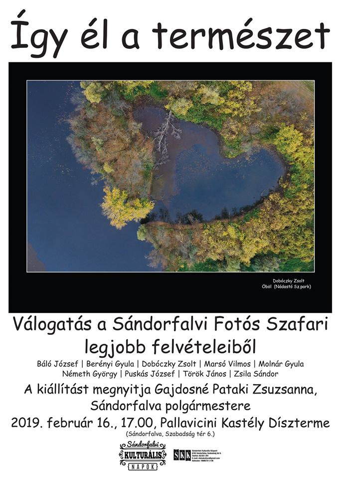Válogatás a Sándorfalvi Fotós Szafari legjobb felvételeiből. Báló József, Berényi Gyula, Dobóczky Zsolt, Marsó Vilmos, Molnár Gyula, Németh György, Puskás József, Török János, Zsila Sándor fotói.