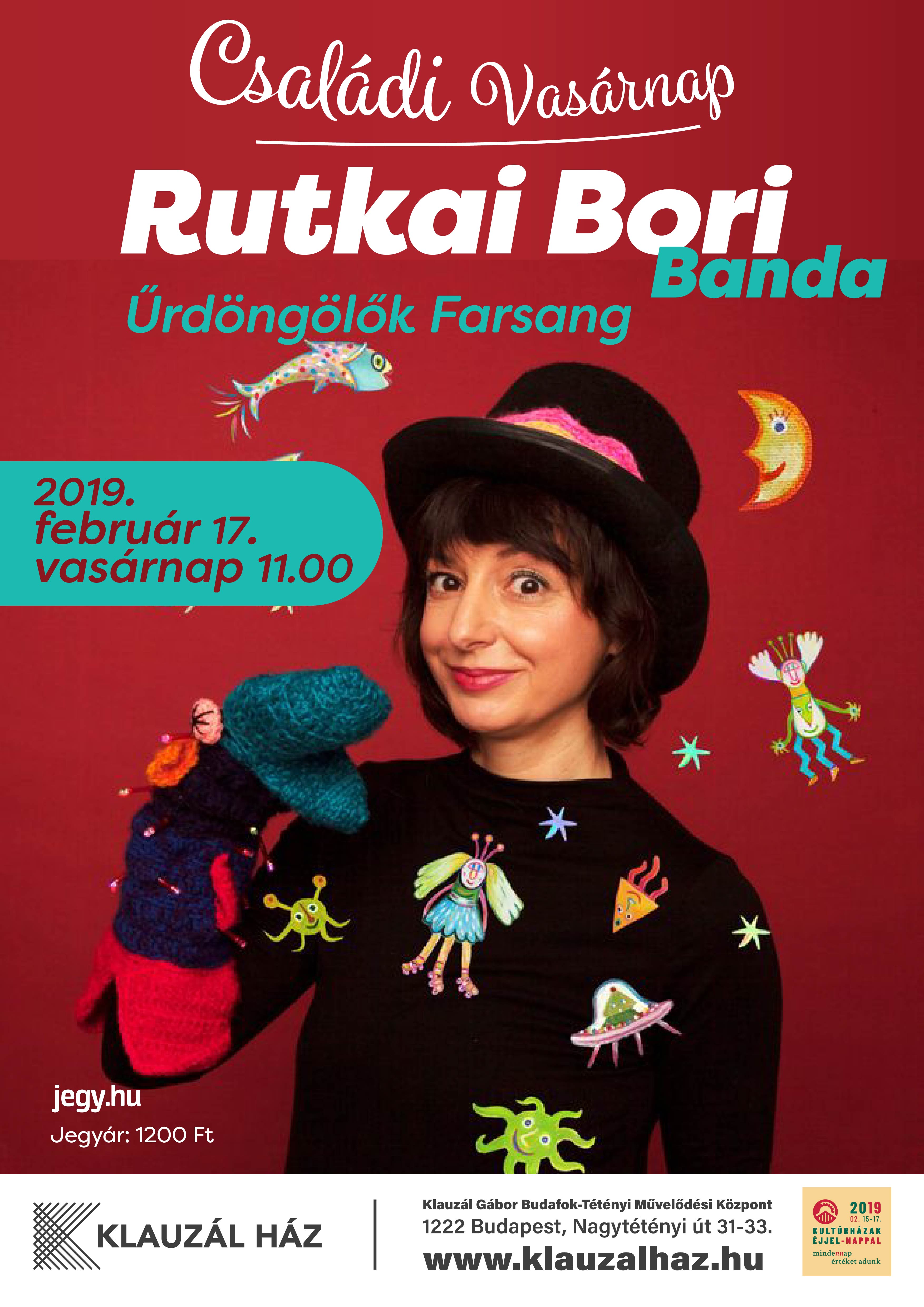 Rutkai Bori énekes, képzőművész, dalszerző, szövegíró, mesekertész. A zenekar legújabb lemeze, az Űrdöngölők még távolabbi, űrbéli tájakra kalauzol bennünket. Hatalmas tejúthajókon, színpompás, repülő csészealjakon, szárnyas picikliken érkeznek az Űrcsűrbe a táncos lábú vendégek. A koncert után kézműveskedés és társasjáték kavalkád.